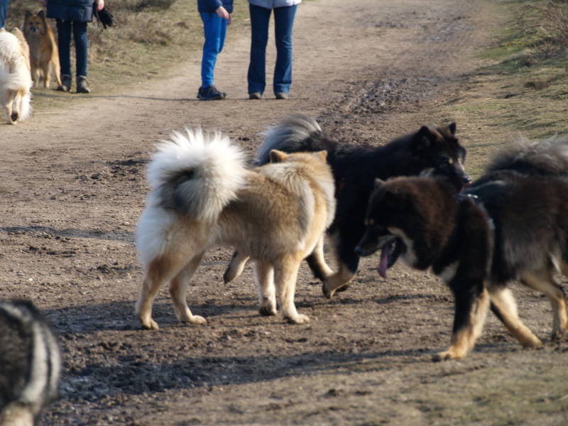Aber! Es dauerte gar nicht lange da kamen immer mehr von meinen Kameraden (die sahen alle aus wie ich nur hatten die anders farbige Jacken an) zusammen mit ihren Menschen. Ich verstand nur noch Bahnhof.....????