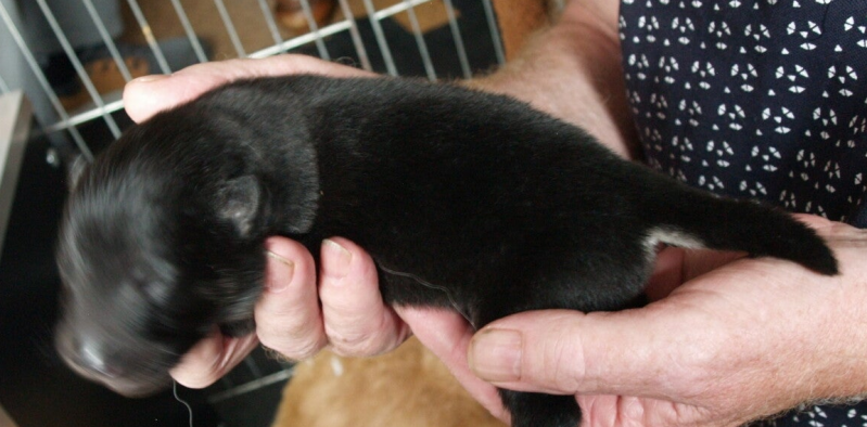de laatste pup vertrekt naar zijn nieuwe huis.